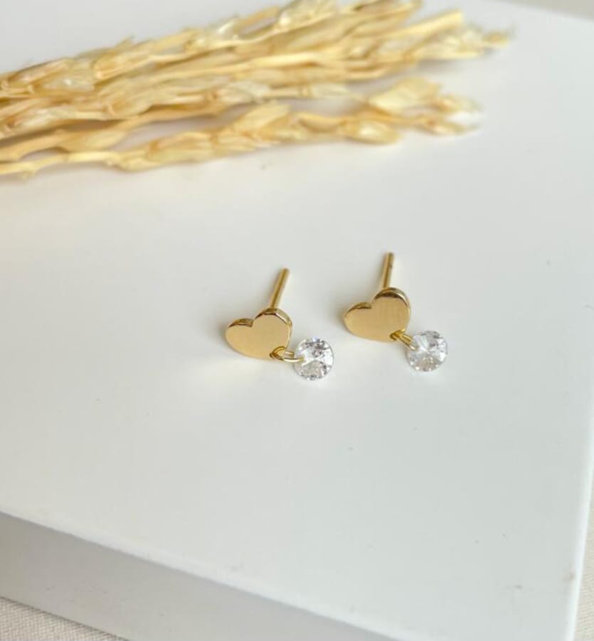 brinco base coração e zircônia